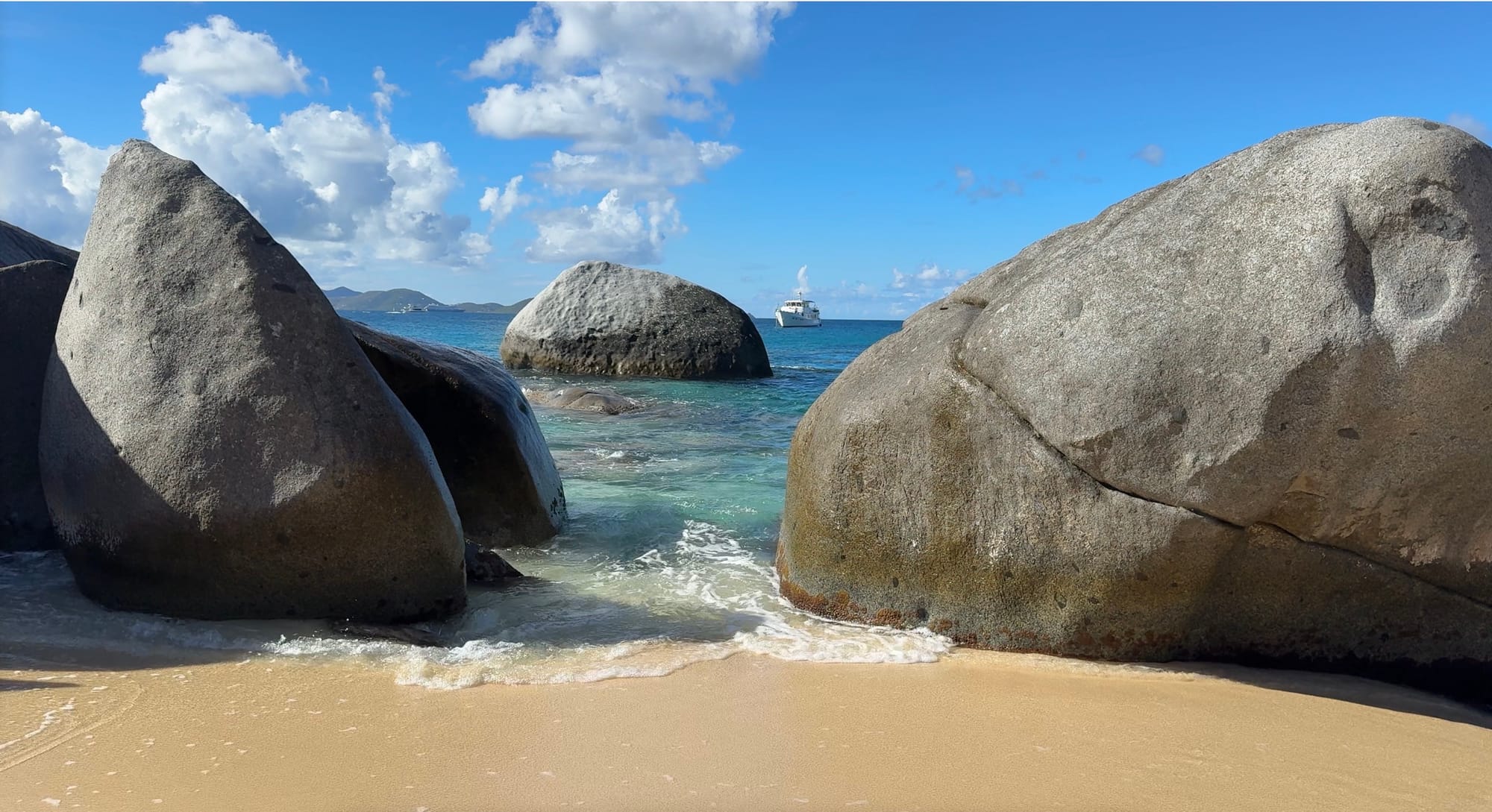 At that point, we had gone off Anegada. It’s not you, Annie. It’s us. We’ll be back for lobster another time. So we headed south again, past the megayachts of North Sound, to Great Trunk Bay on Virgin Gorda. I’m writing this sitting on the bow deck, staring at enormous granite boulders piled up along the beach like an aquatic giant (much bigger even than Jason Mamoa) had gone to the Giant grocery store, bought potatoes instead of yams, realized his error just as he got to the beach, threw them down and swam off in disgust. You will never unsee this. You’re welcome.